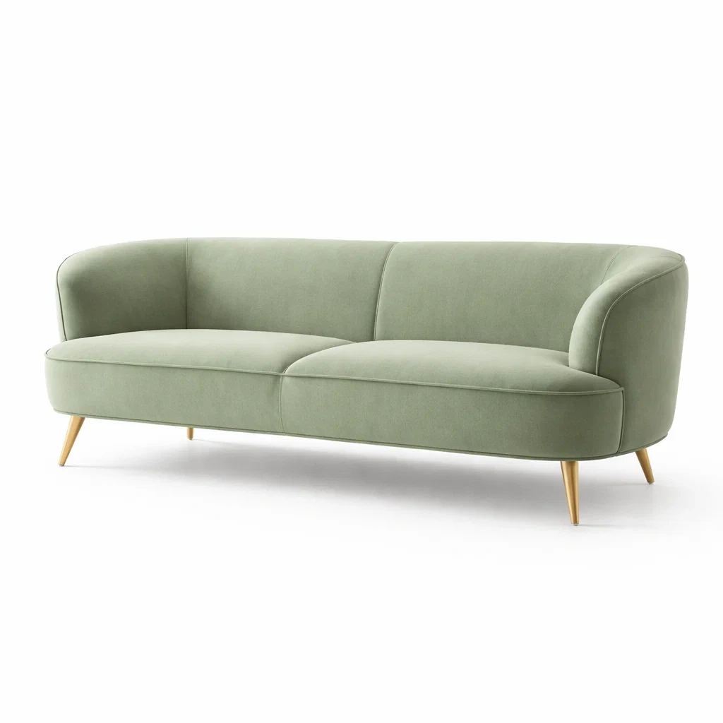 Divano angolare in cotone beige con chaise longue e gambe in legno