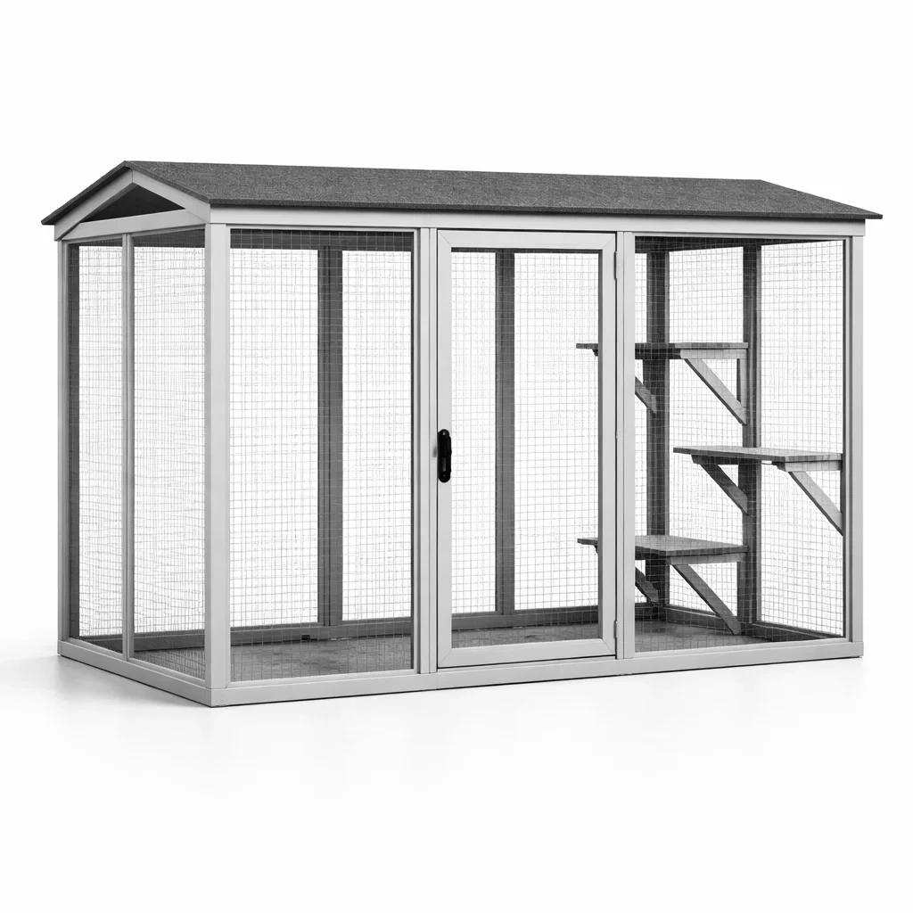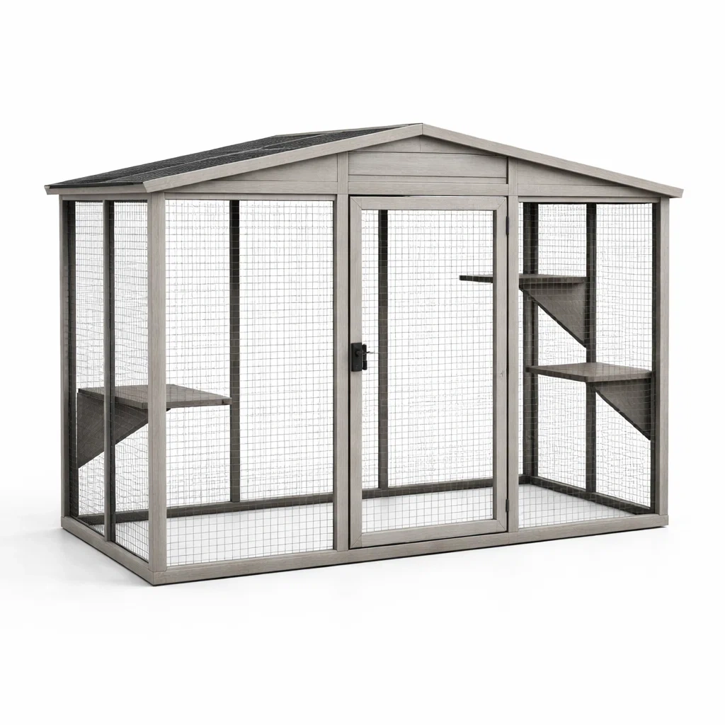 Gabbia per gatti da esterno in legno di pino colore grigio con rete in acciaio dimensioni 190x90x150 cm