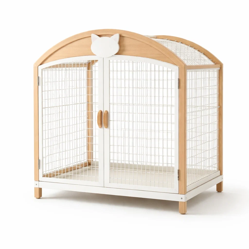 Gabbia per gatti in legno e metallo con struttura ottagonale