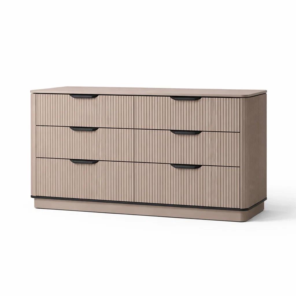 Cassettiera in legno beige con 3 cassetti 120x45x75 cm